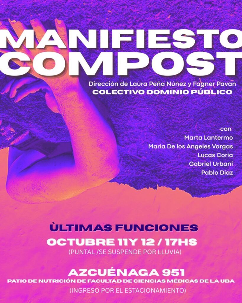 MANIFIESTO COMPOST una obra de danza y performance donde la tierra se presenta como materia de vinculación, participación y colectivización de la performance que es compartida al público y a huertas comunitarias, abriendo un ciclo de cuidado y regeneración hacia una soberanía alimentaria.